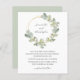 Simple and elegant is this sage green eucalyptus wedding invitation template. Featuring original watercolor eucalyptus artwork arranged in a romantic wreath with gold rings. Customise the text to create something really unique.