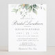 Beautiful bridal luncheon invitation featuring watercolor eucalyptus and gold leaves.