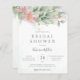 Beautiful bridal shower invitation featuring pink floral watercolor eucalyptus and gold leaves.