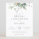 Beautiful bridal luncheon invitation featuring watercolor eucalyptus and gold leaves.