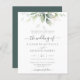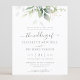 Beautiful wedding invitation featuring watercolor eucalyptus and gold leaves.