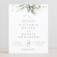 Beautiful wedding invitation featuring watercolor eucalyptus and gold leaves.