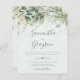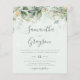 Beautiful wedding invitation featuring watercolor eucalyptus and gold leaves.