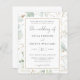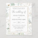 Beautiful eucalyptus greenery wedding invitation featuring a pretty gold border with fresh green eucalyptus leaves accented by golden eucalyptus leaves. The elegant and airy design is perfect for spring and summer weddings.