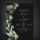 Budget Eucalyptus Greenery Succulent Botanical Watercolor Spring Wedding Invitations on Black background - includes beautiful and elegant script typography with modern botanical leaves and greenery for the special Wedding day celebration.