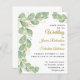 These budget wedding invitations with watercolor eucalyptus greenery and black and gold text on white background are elegant and unique. The template text makes it easy to personalise. Botanical foliage decorate the front and back sides of the wedding invites.