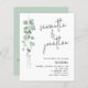 There are two paper options to choose from for this size (4.5 x 5.6”) in the Budget range. For this product, I would recommend the semi-gloss which is a 110 gsm card stock, similar in thickness to a postcard. The Satin option is a much thinner paper 80gsm. The default is set to semi-gloss. PLEASE NOTE there is ONE per sheet. Budget Eucalyptus Informal Wedding Invitation. A Minimalist botanical style with an elegant branch of watercolor eucalyptus leaves running down the left hand side and stylish modern typography.