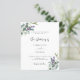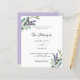 A stylish white background on the front. Decorated with eucalyptus and lavender florals. Personalise and add your names and details.