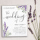 This is a modern and elegant 'the wedding of' calligraphy wedding invitation in dark grey on a white background with the addition of sage green eucalyptus and purple lavender. Easy to customise the text to create something really unique.