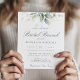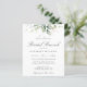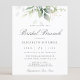 Beautiful bridal brunch invitation featuring watercolor eucalyptus and gold leaves.