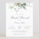 Beautiful affordable bridal brunch invitation featuring watercolor eucalyptus and gold leaves with calligraphy script.