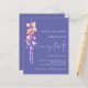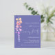 Budget Eucalyptus Lilac Wedding Evening Party invitation. A budget price SMALLER 4.5” x 5.6” alternative. Available in a SEMI GLOSS 110 lb CARD STOCK which is the default option (similar to the thickness of a postcard and recommended for invitations), OR a SATIN FINISH 80 lb THIN PAPER STOCK (more suited for enclosures). Modern botanical style to invite your evening wedding guests. A set handwritten script for Evening Party and the rest of the text you can easily personalise. An elegant branch of watercolor eucalyptus leaves in shades of coral, peach and pink runs down the left hand side on a Very Peri lilac blue background.