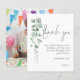 A value for money BUDGET alternative on a smaller size 4.5 x 5.6” semi-gloss 110lbs weight, which is of similar thickness to a postcard (however is not suitable to use as a postcard.). PLEASE NOTE there is ONE invite per sheet. Budget Eucalyptus Photo 80th Birthday Thank You. Minimalist elegance for your eightieth birthday thanks with watercolor foliage flowing down on the left hand side and text to the right. A set handwritten style script for Thank You and the rest of the text you can easily personalise. Replace the sample photo on the back with your own favourite from your party.