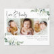 A modern eucalyptus photo baby thank you card.