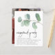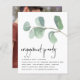 Eucalyptus Script photo Engagement Party Invite. A budget price SMALLER 4.5” x 5.6” alternative. Available in a SEMI GLOSS 110 lb CARD STOCK which is the default option (recommended for invitations), OR a SATIN FINISH 80 lb THINNER PAPER STOCK (ideal for enclosures). Envelopes are an optional extra and are slightly larger than the card size. Trendy style with artsy watercolor foliage and informal set script for the header. Easily personalise the rest of the text to your own details and replace the photo on the back with your own.