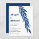 BUDGET eucalyptus branch with leaves in blue tones wedding invitation with QR code. A lovely design for your wedding featuring a cascading branch of eucalyptus leaves. The back is of blue colour and features your QR code for RSVP.