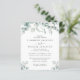 Elegant budget-friendly all-in-one wedding invitation featuring watercolors of sage green eucalyptus greenery, stylish script and soft grey typography. On the reverse side, add your photo and input your wedding website address to create a QR code for your guests to scan to RSVP online and obtain additional wedding details such as directions and accommodations.