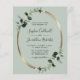 Budget Eucalyptus Sage Gold Metallic Oval Wedding Invitation... Our luxe botanical wedding invitation features a gold metallic oval frame embellished with emerald-hued eucalyptus leaves over a light sage green background. All example text can be easily revised with your own information on the personalisation template. Part of a wedding suite with coordinating accessories in the same eucalyptus sage theme.