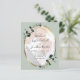 Budget Eucalyptus Sage Photo Overlay Gold Metallic Oval Wedding Invitation... Our affordable sage eucalyptus photo wedding invitation features a gold metallic oval frame embellished with emerald-hued eucalyptus leaves bordering a photo of the bride and groom on a light sage green background. Your photo will be placed on a layer underneath a white transparency to "fade" the colours somewhat so the text on top is readable. All example text can be easily revised with your own information on the personalisation template. Part of a wedding suite with coordinating accessories in the same eucalyptus sage theme.