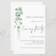 A LARGER size 5.5” x 8.5” at a budget price, on a SEMI GLOSS 110 lb CARD STOCK, great for invitations, at roughly the same thickness as a postcard, or an elegant 110 lb LINEN stock – for a luxury, slightly thinner feel at great value. PLEASE NOTE THE OPTIONAL ENVELOPES ARE A LITTLE BIGGER IN SIZE AT 6.75” x 9” approx. This budget size alternative is also available in other paper choices. The FELT 100 lbs paper is buff coloured, NOT white, so adds a rustic touch. The MATTE 80lbs paper stock is bright white, for crisp printing, great for your menus and programs, whilst the SATIN 80lbs paper is thin and light, ideal for enclosures Budget Eucalyptus Wedding Evening Party Invitation. A value for money BUDGET alternative on a smaller size 4.5 x 5.6” semi-gloss 110lbs weight, which is of similar thickness to a postcard (however is not suitable to use as a postcard.). PLEASE NOTE there is ONE invite per sheet. A Minimalist botanical style to invite your evening wedding guests. A set handwritten script for Evening Party and the rest of the text you can easily personalise. An elegant branch of watercolor eucalyptus leaves runs down the left hand side.