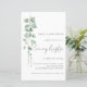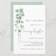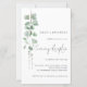 Budget Eucalyptus Wedding Evening Reception. A LARGER size 5.5” x 8.5” at a budget price, on a SEMI GLOSS 110 lb CARD STOCK, great for invitations, at roughly the same thickness as a postcard, or an elegant 110 lb LINEN stock – for a luxury, slightly thinner feel at great value. PLEASE NOTE THE OPTIONAL ENVELOPES ARE A LITTLE BIGGER IN SIZE AT 6.75” x 9” approx. This budget size alternative is also available in other paper choices. The FELT 100 lbs paper is buff colored, NOT white, so adds a rustic touch. The MATTE 80lbs paper stock is bright white, for crisp printing, great for your menus and programs, whilst the SATIN 80lbs paper is thin and light, ideal for enclosures. PLEASE NOTE THE OPTIONAL ENVELOPES ARE A LITTLE BIGGER IN SIZE AT 6.75” x 9” approx. Minimalist botanical style to invite your evening wedding guests. A set handwritten script for Evening Party and the rest of the text you can easily personalize. An elegant branch of watercolor eucalyptus leaves runs down the left hand side.