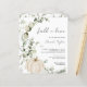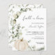 This budget paper white pumpkin eucalyptus fall floral bridal shower invitation is perfect for an elegant bridal shower. The design features a beautiful watercolor pumpkin in white, paired with eucalyptus greenery. An elegant script font is the perfect finishing touch. The card reverses to a pretty eucalyptus pattern. Personalise with all of the details for your shower.