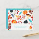 Attractive modern Thanksgiving card with leaves and pumpkins in vibrant colours. Text template fields both sides ensure you can write your annual catch up letter for your friends and family. Envelopes not included.