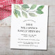 This Budget Family Reunion Invitation is decorated with watercolor foliage. Easily customisable. Use the Design Tool to change the text size, style, or colour. Because we create our artwork you won't find this exact image from other designers. Original Watercolor © Michele Davies.