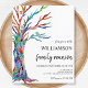 It features a family tree in the colours of the rainbow and space for you to customise with your family name and your details.