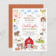 Celebrate your little farmer's big day with this birthday party invitation! This birthday party budget invitation features a frame full of charming farm animal illustrations. There are two little pigs, a family of ducks, cows, bunny rabbits, a horse and a donkey, goats, some sheep, a cat and a dog, a house full of chickens, and a big red barn. Inside the frame, it reads "Oink, quack, moo & neigh" and an invite to the birthday. The birthday boy or birthday girl's name is written in red script lettering with their age below in green capitals. The event details are printed below in simple serif typography. This any-age birthday party invite is perfect for trips to the petting zoo, celebrations at a local farm, and barnyard-themed parties. As part of the budget selection on Zazzle, this sheet isn't a standard invite size or paper quality. If you want this design on an invitation card you can find it in the collection or use the Zazzle Make Machine to transfer it onto the product of your choice. View the collection linked on this page for matching items or visit our store for more birthday party invitations.