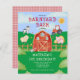 This super cute and budget friendly farm themed 1st birthday invitation is perfect for a Spring or Summer birthday! The venue can be anywhere - at a farm or in your back yard - you can create a farm themed birthday party anywhere! Bales of straw for your guests to sit on, a buffet table with a red and white gingham style table cloth and you can even have inflatable farm yard animals if you can't get a hold of some real farm animals for your back yard. This theme is so versatile and your little guests will love it! The best part is that this invitation can be personalised to include your little one's details. This design features cute farm animals, a cute tractor and a lovely blue sky! There is a lovely gingham style picnic tablecloth style pattern on the back.