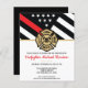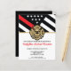 This design features a firemen's flag with black and white stripes, and a thin red line stripe as well. "Congratulations" and a fireman's badge sits above the name of the graduating firefighter. This design also works great for retiring firefighters, lieutenants, or chiefs. Celebrate in style!