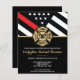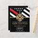 This design features a firemen's flag with black and white stripes, and a thin red line stripe as well. A fireman's badge sits above all of the party details for the graduating firefighter. This design also works great for a retiring firefighter, lieutenant, or chief's retirement party.
