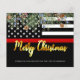 Send Merry Christmas greetings to friends, family, fellow fire departments and your community with this unique Thin Red Line Firefighter Merry Christmas Card - American Flag in fireman flag colours, modern black and red with holly leaves and berries and elegant gold script. Personalise with your message and family name or fire department . These firefighter Christmas cards are perfect for fireman families as well as firedepartments. COPYRIGHT © 2020 Judy Burrows, Black Dog Art - All Rights Reserved. Budget Firefighter Merry Christmas Postcard