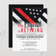 This design features a firemens flag with black and white stripes, and a thin red line stripe as well. "The Legend is Retiring" text sits above all of the party details for the retiring firefighter, lieutenant, or chief.