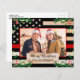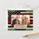 Send Merry Christmas greetings to friends and family with this unique Thin Red Line Firefighter Christmas Card - American Flag in firefighter flag colours, modern black and red with holly leaves and berries on a wood background. Personalise with your favourite family photo and name . These budget merry christmas postcards need to be mailed as oversized postcards so may incur standard postage fees but they don't need an envelope or a return address label. COPYRIGHT © 2020 Judy Burrows, Black Dog Art - All Rights Reserved. Budget Firefighter Thin Red Line Flag Christmas Cards