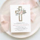 Budget Daughter's Dusty Rose Floral and Eucalyptus - Cross Botanical Sage Green Greenery Watercolor Religious First (1st) Holy Communion Invitations.