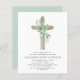 Budget Sage Green Girl's Eucalyptus and Cross Botanical Greenery Watercolor Religious First (1st) Holy Communion Invitations.