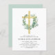 Budget Sage Green Floral Boy's Eucalyptus and Gold Cross Botanical Greenery Watercolor Religious First (1st) Holy Communion Invitations.