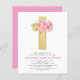Budget Pastel Pink, Orange and Purple Floral Rose Flowers Cross Botanical Watercolor Religious First (1st) Holy Communion Invitations.