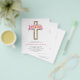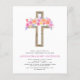 Budget Pastel Pink, Orange and Purple Floral Rose Flowers Cross Botanical Watercolor Religious First (1st) Holy Communion Invitations.
