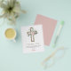 Budget Daughter's Dusty Rose Floral and Eucalyptus - Cross Botanical Sage Green Greenery Watercolor Religious First (1st) Holy Communion Thank You Cards.