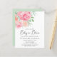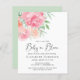 This pretty and stylish budget-friendly baby shower invitation features pink and coral watercolor florals and "Baby in Bloom" written in a stylish contemporary script.