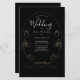 A stylish, gothic, wedding invitation on budget paper (thinner paper) in black, gold tones, and white. It features a floral frame with roses. This invitation mixes a memorable mood with elegance, letting you design your wedding as you choose. Simply add your text, add this invitation to your cart, then have a wedding that starts your new life and sees it all to the end.