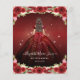 Floral Burgundy Maroon Red Princess Gown Dress Gold Glitter Sparkle 15th Birthday Quinceanera Invitation