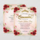 Modern Glam Floral Botanical Burgundy Maroon Red Blush Pink Gold Tiara Crown Sparkle Glitter RSVP Birthday Quinceañera Invitation