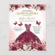 Celebrate your special day with the Floral Burgundy Butterfly Princess Quinceañera Invitation. This elegant design features rich burgundy hues adorned with delicate floral and butterfly accents, symbolising beauty and transformation. Perfect for a princess-themed quinceañera, the invitation captures the essence of grace and sophistication. The intricate details and vibrant colours set the tone for an unforgettable celebration, inviting your guests to join in this once-in-a-lifetime event. Make your quinceañera magical with this stunning, timeless invitation that reflects your style and charm.