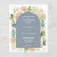 All-in-one dusty blue wedding invitations feature your details on the front and back in chic white lettering. Beautiful watercolor flowers - white and green hydrangeas, pink and cream roses, daisies, small stems and leaves - on the front with your info on an arched overlay. Printed on affordable, budget 110 lb. paper. **WHITE ENVELOPES are an additional cost. The Live Design Service can help you with your design layout or colours if needed. MATCHING items in our store.