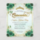 Modern Glam Floral Botanical Emerald Green Gold Tiara Sparkle Glitter RSVP Birthday Quinceañera Invitation