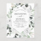 Budget White Floral Roses and Eucalyptus Botanical Greenery Watercolor Wedding Spring or Summer Wedding Invitations - includes beautiful and elegant script typography with modern tropical botanical flowers and greenery for the special Wedding day celebration.